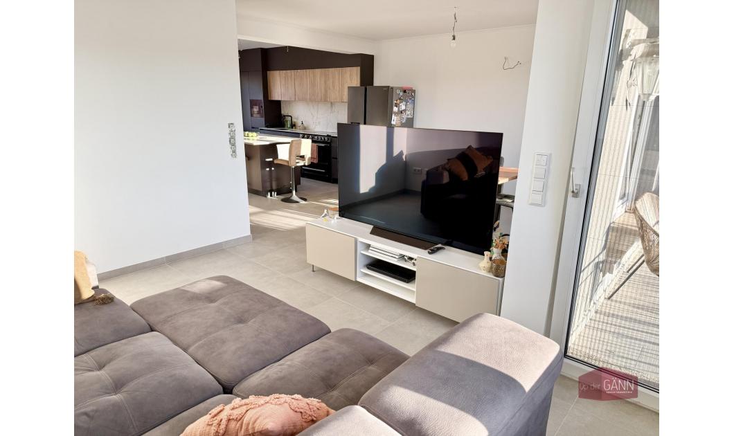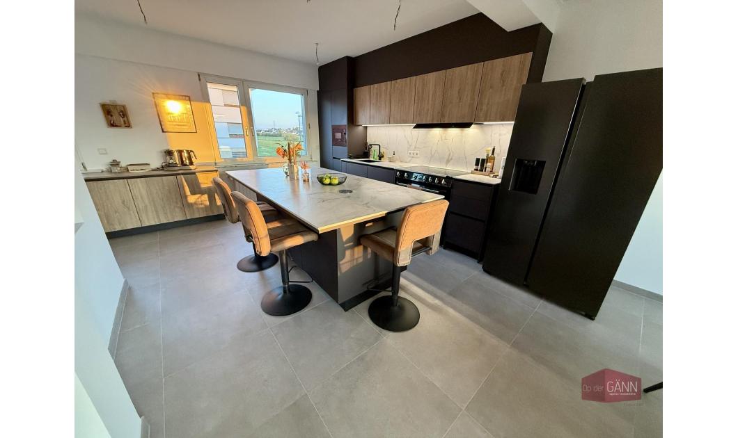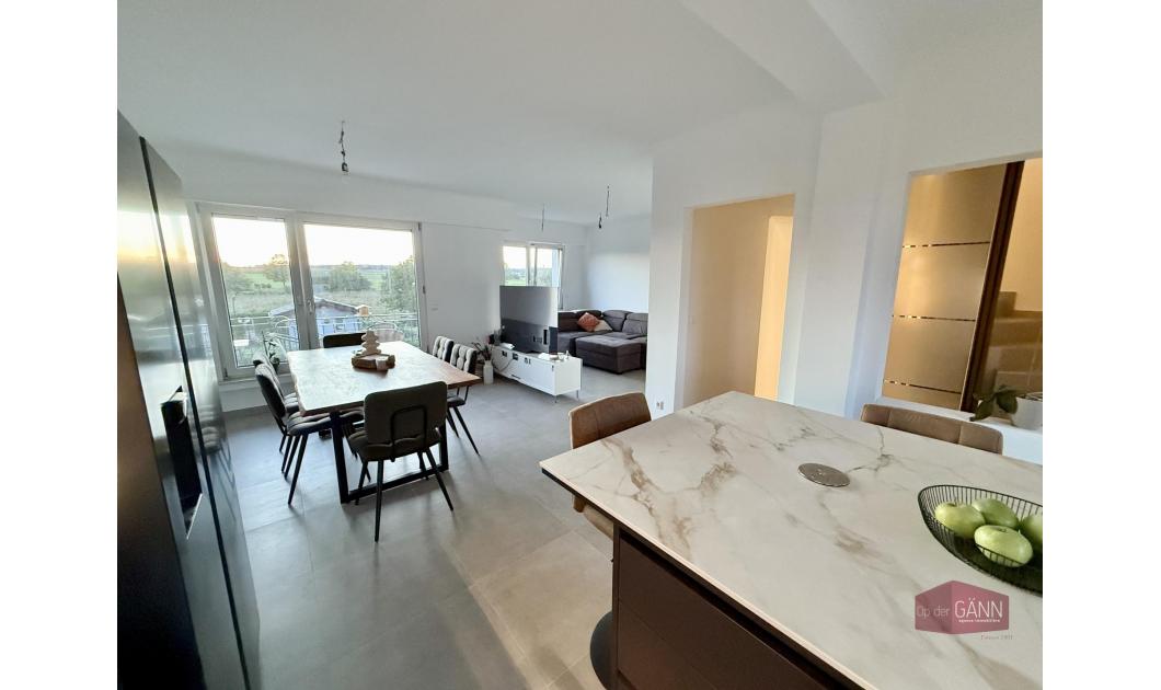 Après quelques marches vous arrivez sur un grand espace très lumineux composé de la cuisine ouverte sur le salon/living avec accès à un agréable balcon. Des toilettes séparées sont également présentes.