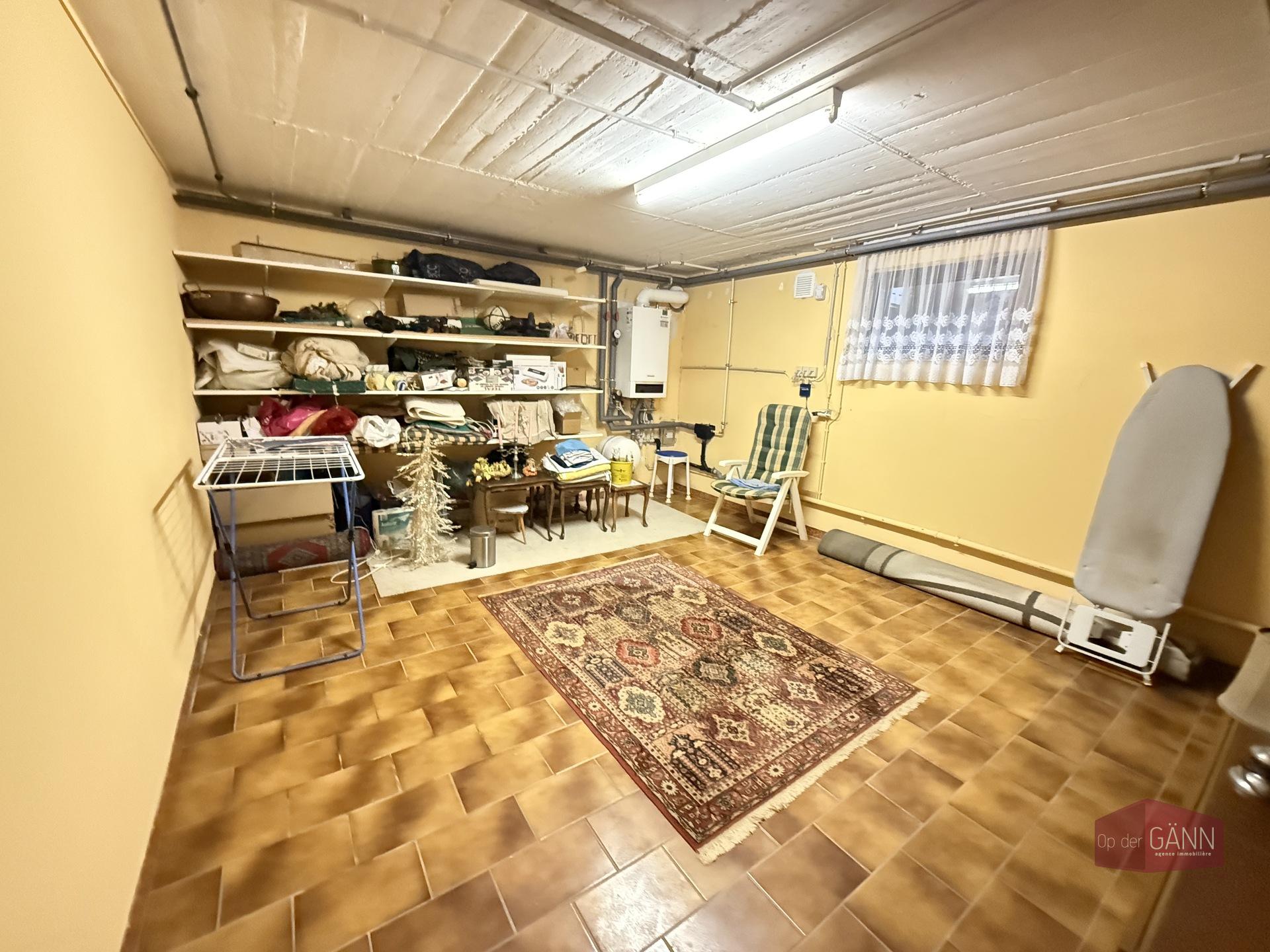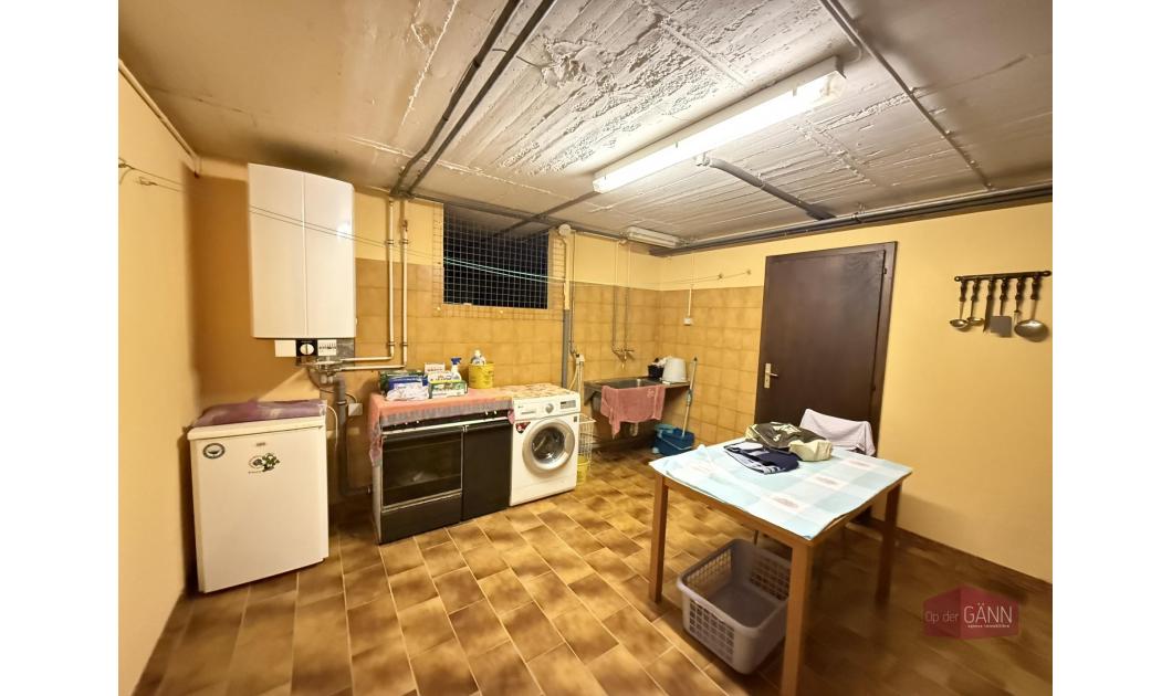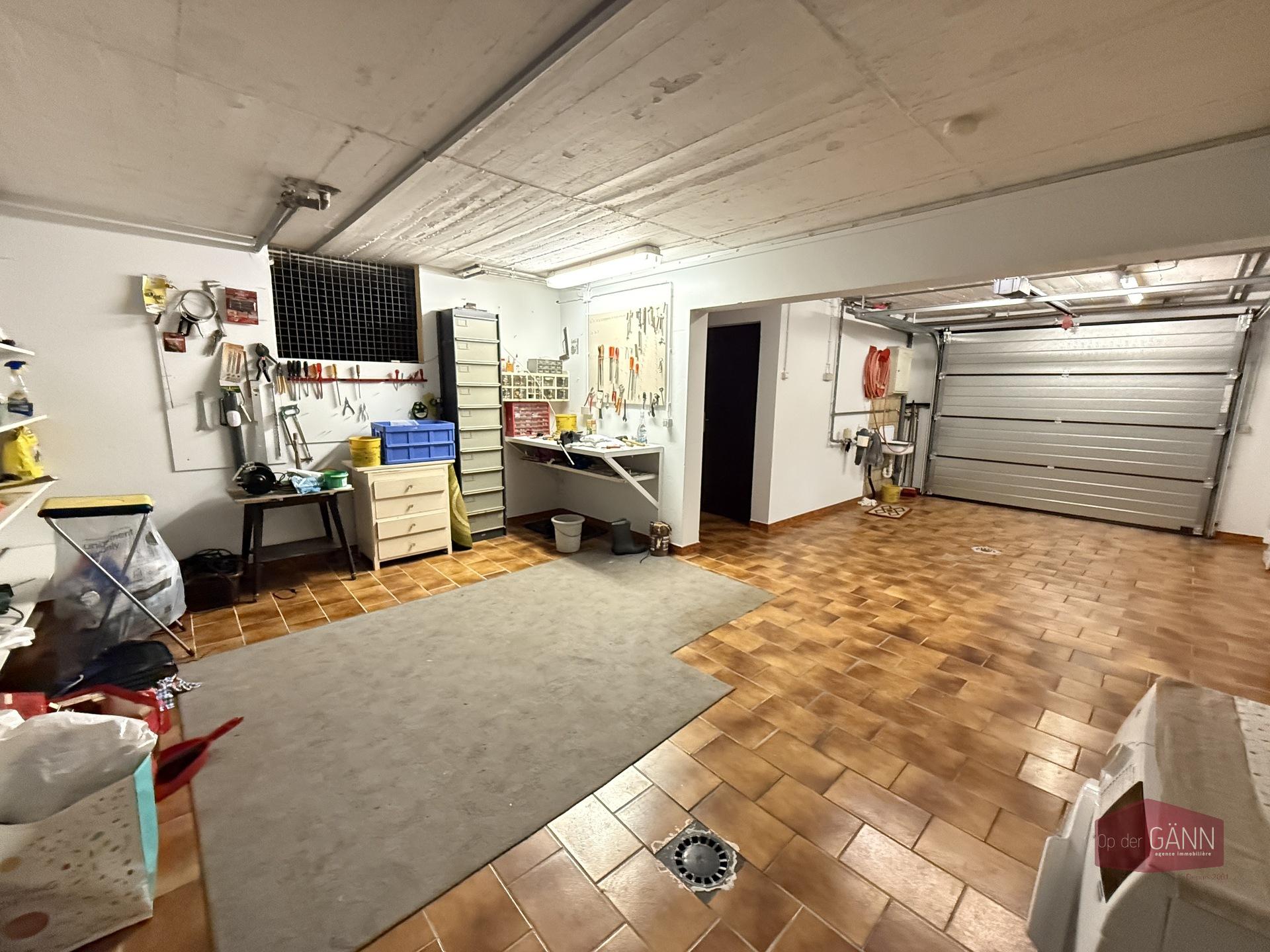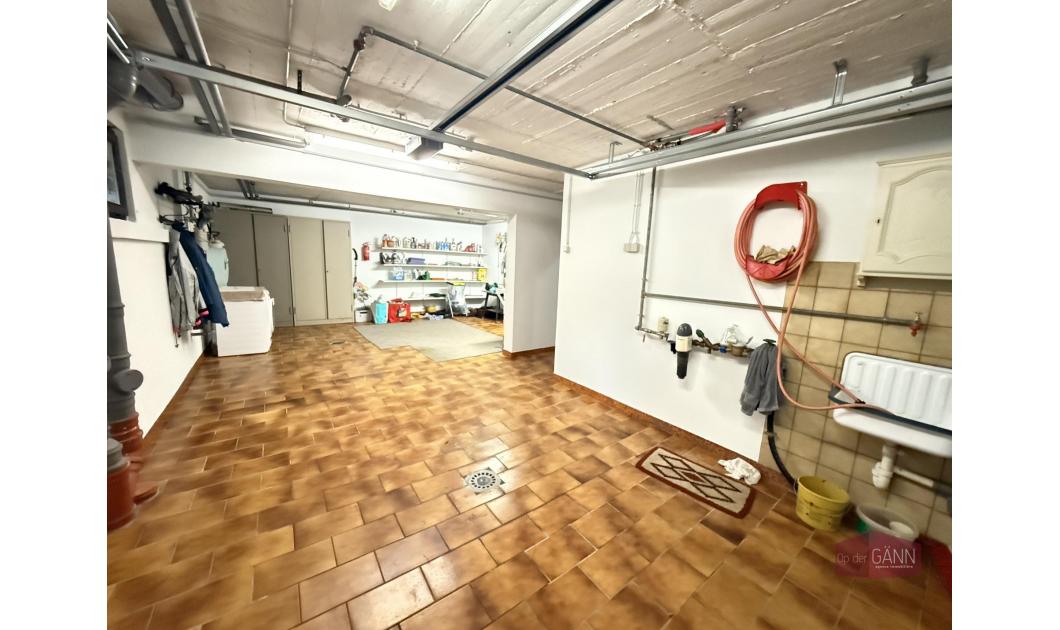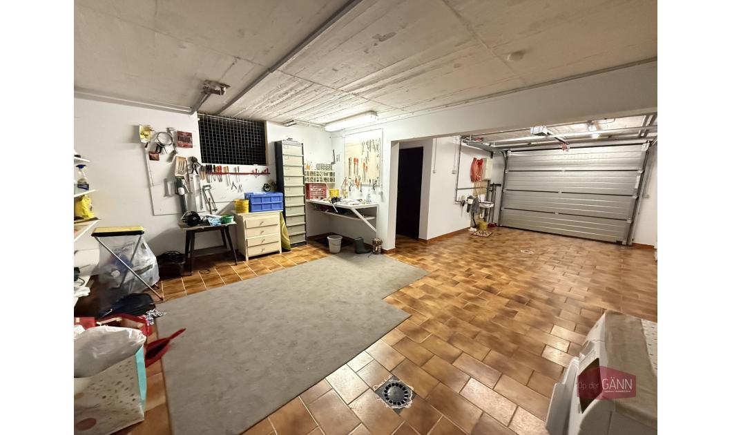 Eine Treppe führt Sie in das Untergeschoss, wo Sie Folgendes finden: einen Raum, der als 4. Schlafzimmer oder Spielzimmer/Werkstatt genutzt werden kann, ein Badezimmer mit Toilette, eine Waschküche, einen Heizungsraum, einen Keller, einen Flur und eine große Garage für 2 Autos.